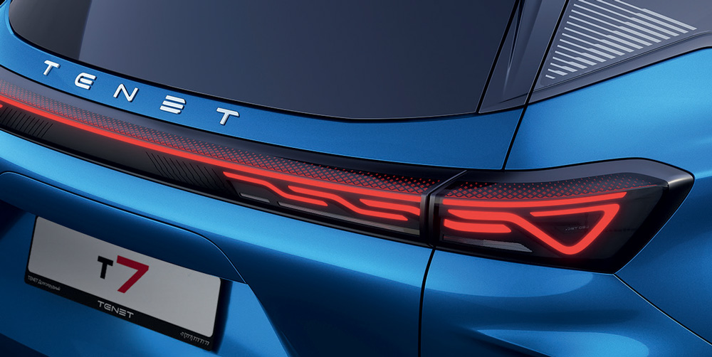 Эффект парящей крыши Tenet T7 достигается благодаря скрытым задним стойкам и удачному контрастному сочетанию цветов. Стремительный силуэт автомобиля подчёркивают динамичные выштамповки на крыльях и дверях, а спортивный характер завершает элегантный спойлер на багажной двери.